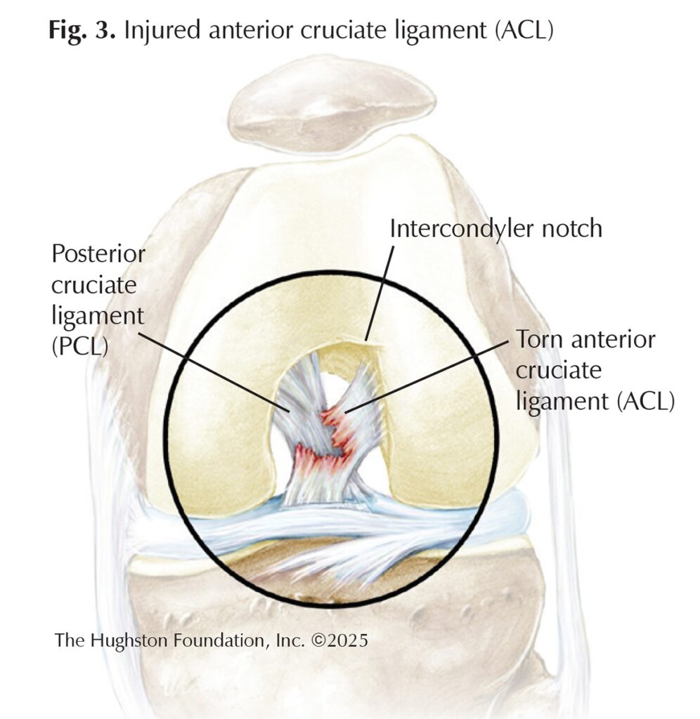 ACL injuries often occur in young, active individuals, particularly athletes involved in pivoting sports like soccer, basketball, football, and skiing (Fig. 3). Females are at higher risk than males due to anatomical and hormonal factors. The typical mechanism of injury involves noncontact movements such as sudden deceleration, change in direction, or landing from a jump.