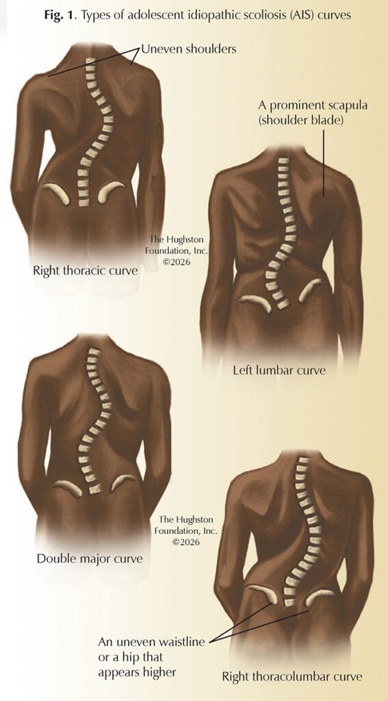 Adolescent idiopathic scoliosis (AIS), the most common type of spinal deformity that affects children, is characterized by an abnormal 3-dimensional curvature of the spine measuring 10 degrees or more (Fig. 1). The word “scoliosis” comes from the Greek term “skoliosis,” which means crookedness. Scoliosis is a deformity that causes the spine to curve to the side and the vertebrae to rotate into an abnormal position. The term “adolescent” signifies the onset between the ages of 10 and 18 years old, coinciding with the growth spurt of teenagers that begins at puberty. “Idiopathic” means that the cause of this spinal deformity is unknown, which distinguishes it from other, rarer types of scoliosis that result from congenital (present at birth) or neuromuscular (control of muscles by nerves) causes.